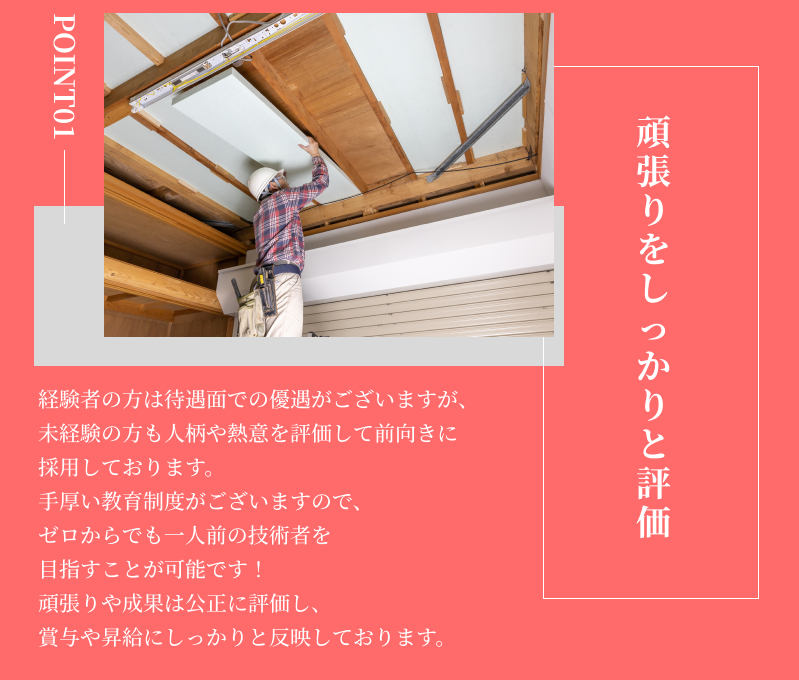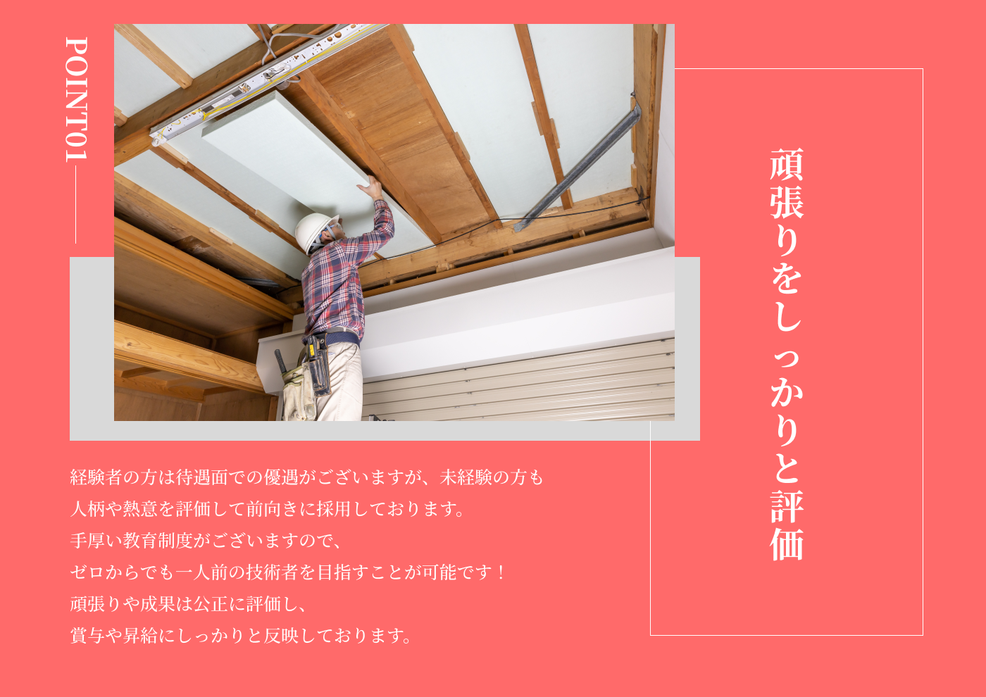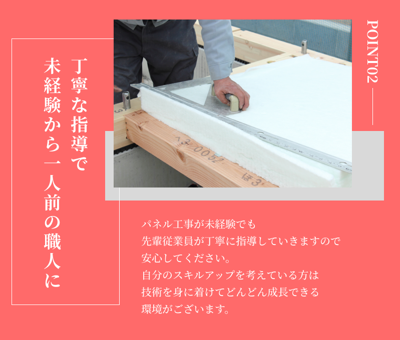 しっかりと研修を行いますので、未経験の方でも一人前の職人になることができます。